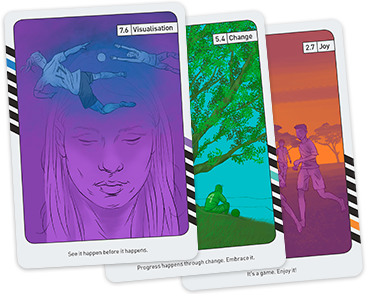 The cards represent qualities for optimal development for you as an athlete and as an individual. Knowing these concepts is important when practicing mental training. Each concept is carefully chosen to reflect the wide range of mental training.